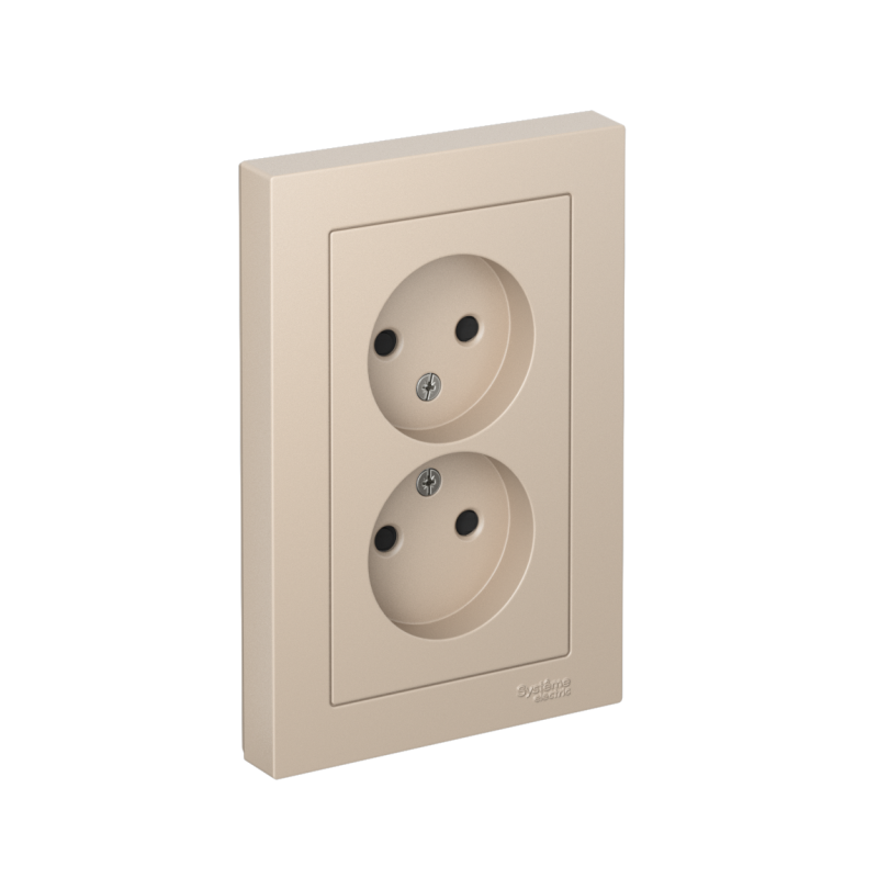 Розетка двойная в сборе Systeme Electric (ранее Schneider Electric) серии AtlasDesign в цвете песочный без заземления со шторками подходит для сетей 250 В, на ток 16 А. Лицевые детали из качественного ABS-пластика, устойчивого к царапинам и УФ-излучению. Двойная розетка позволяет подключить два устройства в одном месте. Изделие поставляется в комплекте с рамкой того же цвета.