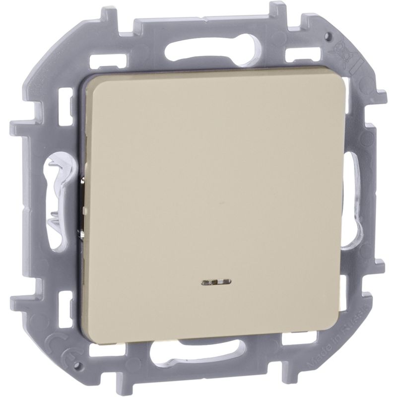 Выключатель одноклавишный с подсветкой/индикацией скрытого монтажа Inspiria, цвет "Слоновая кость", номинальный ток 10АХ, напряжение ~250В, безвинтовые зажимы. Устанавливается в жилых и общественных помещениях для управления приборами освещения, вентиляции и т.д.