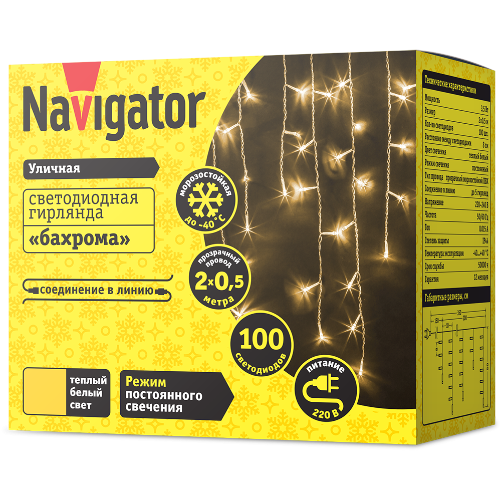 Новогодние товары Гирлянда "Занавес" Постоянного свечения. белый 2*3м 400LED Прозрачный провод IP20 NAVIGATOR