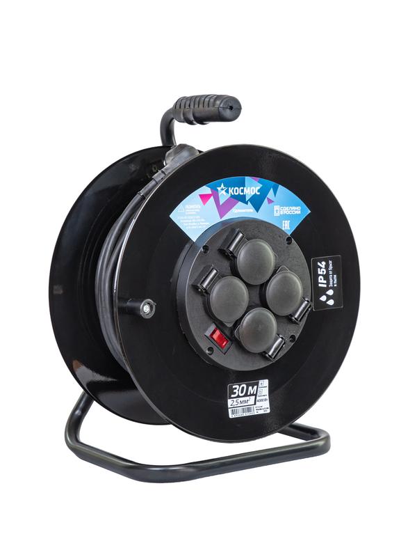 Выключатели, переключатели Удлинитель на катушке 4х30м с заземл. 16А IP54 4 гн КГ 3х2.5 термозащ. КОСМОС YKKsm30m-4g-Z(2.5)KG